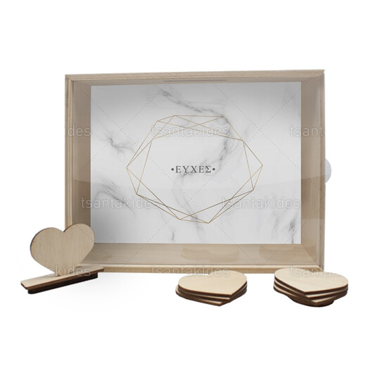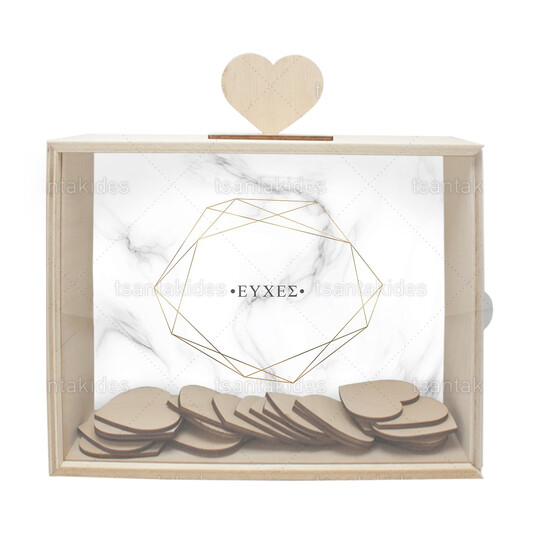 Ξύλινο κουτί ευχών γάμου εκτυπωμένο με γραμμικό σχεδιασμό και background σε στυλ μάρμαρο