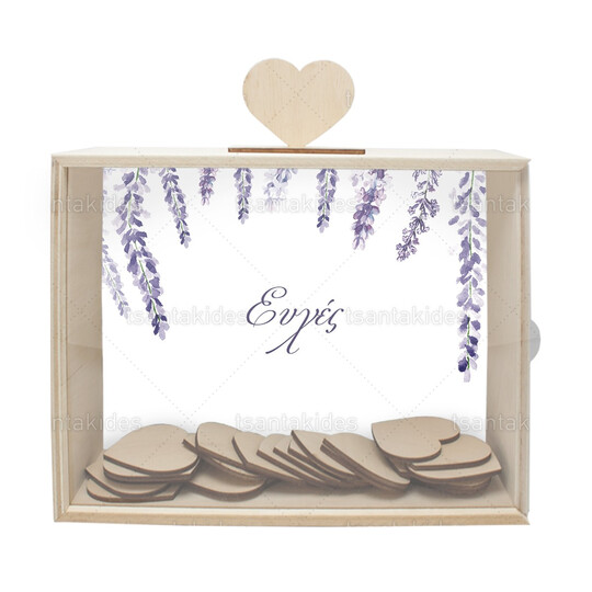 Ξύλινο κουτί ευχών γάμου εκτυπωμένο με θέμα τη λεβάντα