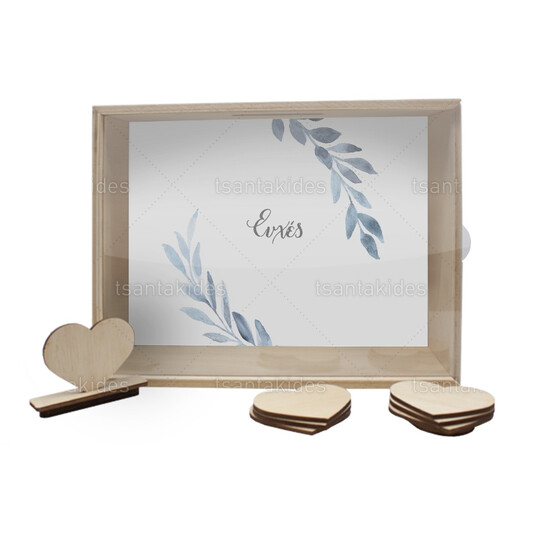 Ξύλινο κουτί ευχών γάμου εκτυπωμένο με κλαδιά σε σιελ χρωματισμούς