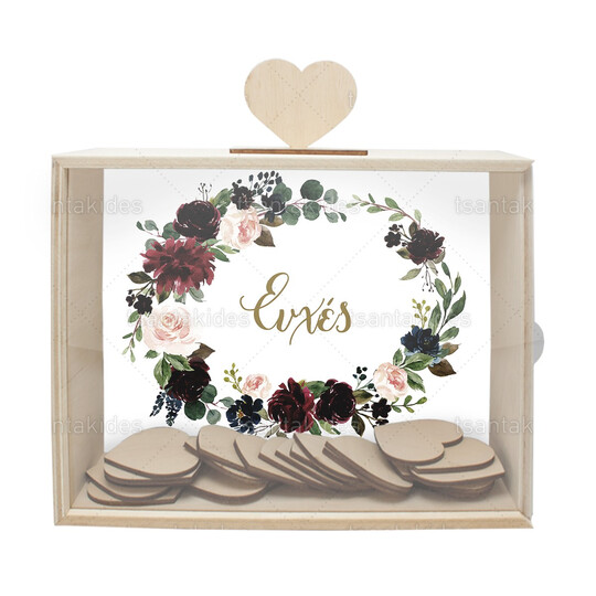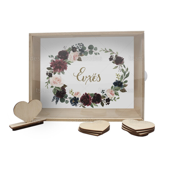 Ξύλινο κουτί ευχών γάμου εκτυπωμένο με floral σχεδιασμό