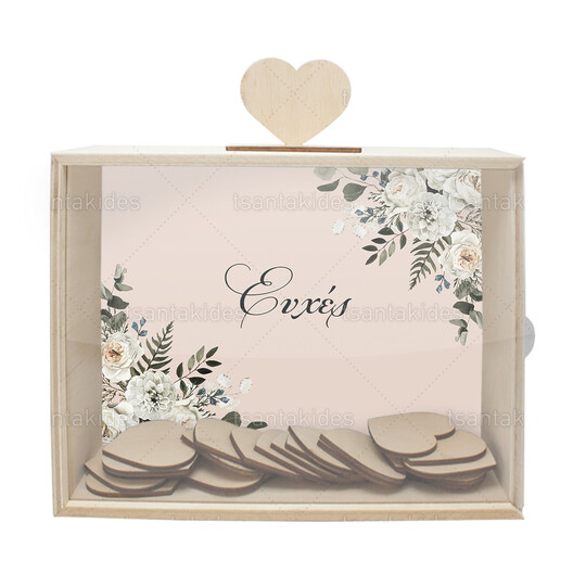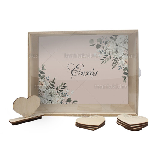 Ξύλινο κουτί ευχών γάμου εκτυπωμένο με floral σχεδιασμό από τριαντάφυλλα και ορχιδέες