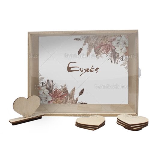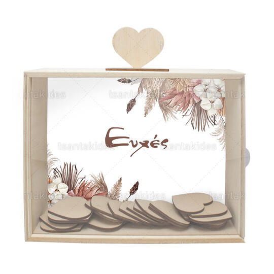 Ξύλινο κουτί ευχών γάμου εκτυπωμένο με dried flowers and pampas