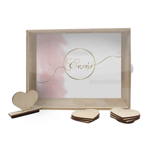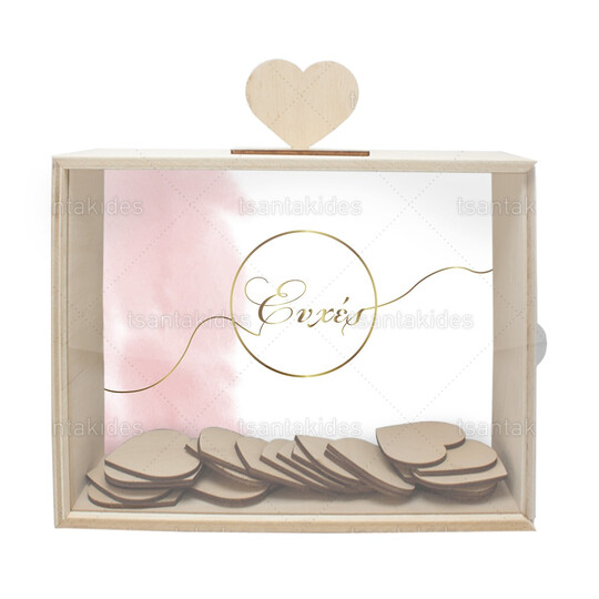Ξύλινο κουτί ευχών γάμου εκτυπωμένο σε ροζ pastel χρωματισμούς