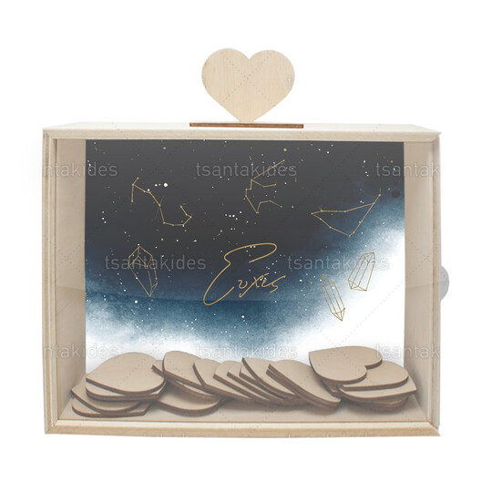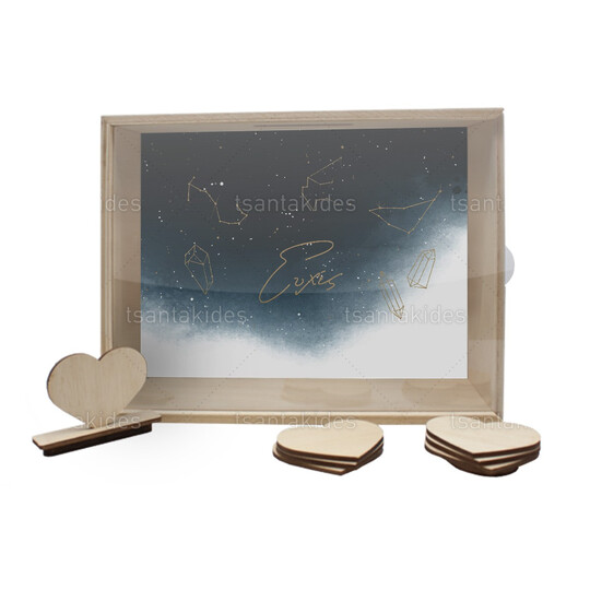 Ξύλινο κουτί ευχών γάμου εκτυπωμένο με αστερισμούς