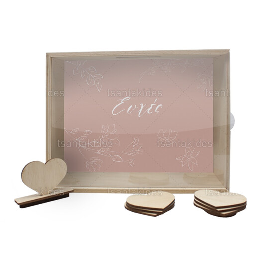 Ξύλινο κουτί ευχών γάμου εκτυπωμένο με γραμμικά λουλούδια σε σάπιο μήλο background