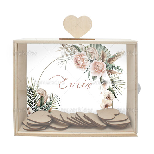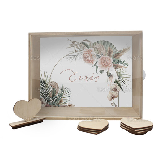 Ξύλινο κουτί ευχών γάμου εκτυπωμένο με θέμα Boho Chic