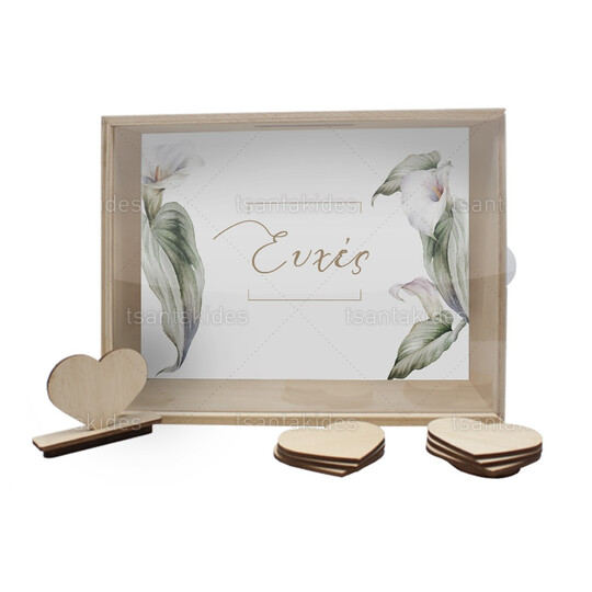 Ξύλινο κουτί ευχών γάμου εκτυπωμένο με θέμα Calla Lily