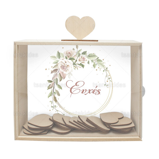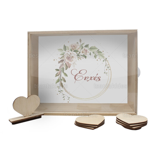 Ξύλινο κουτί ευχών γάμου εκτυπωμένο με θέμα Flower Wreath