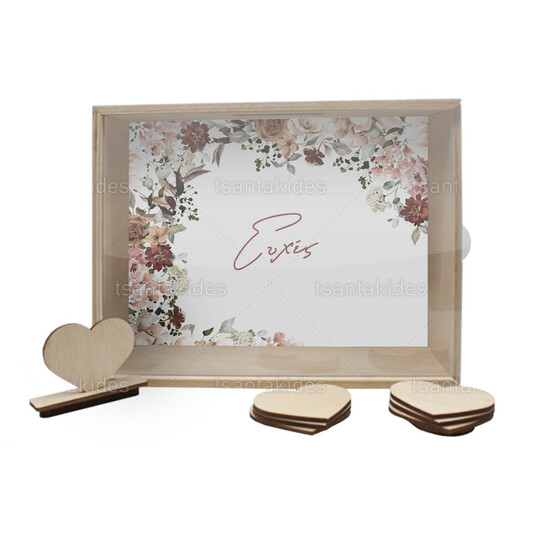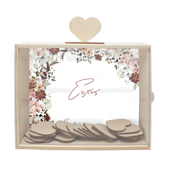 Ξύλινο κουτί ευχών γάμου εκτυπωμένο με θέμα Flower Autumn