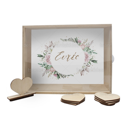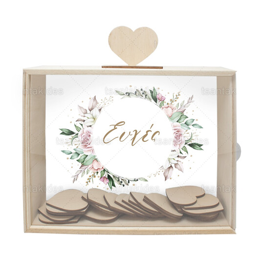Ξύλινο κουτί ευχών γάμου εκτυπωμένο με θέμα Flower Romance