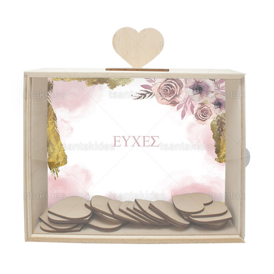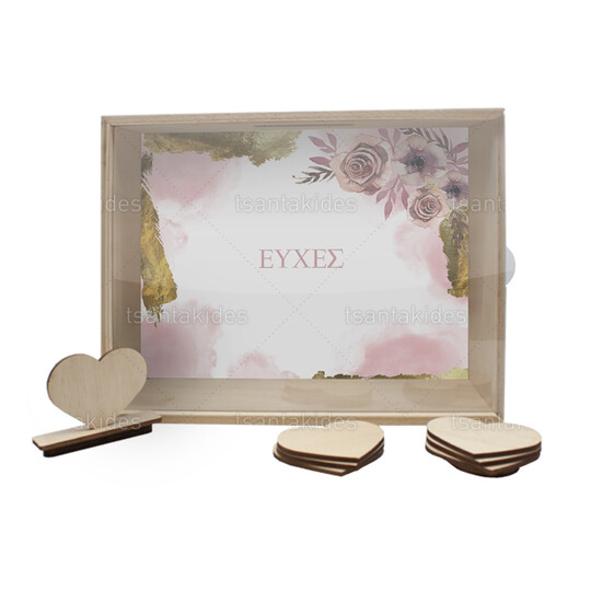 Ξύλινο κουτί ευχών γάμου εκτυπωμένο με θέμα Flowers with Gold Foil