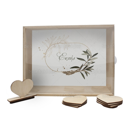 Ξύλινο κουτί ευχών γάμου εκτυπωμένο με θέμα Gold Olive Brush