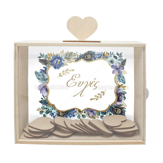 Το κουτί συνοδεύεται από 50 ατύπωτες ξύλινες καρδιές για τις ευχές και μια ξύλινη καρδιά-καπάκι για την θυρίδα στο πάνω μέρος του κουτιού.