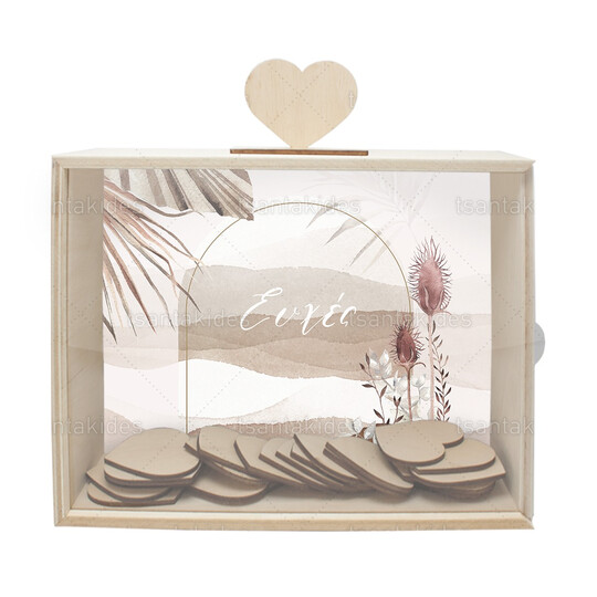 Ξύλινο κουτί ευχών γάμου εκτυπωμένο με θέμα Bohemian Window