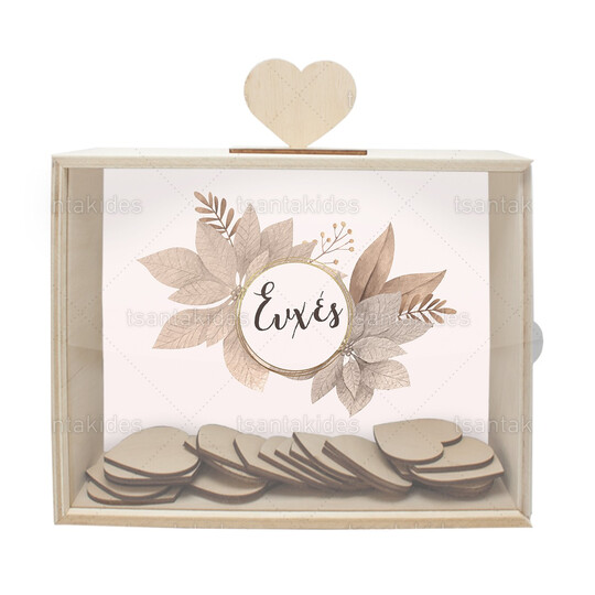 Το κουτί συνοδεύεται από 50 ατύπωτες ξύλινες καρδιές για τις ευχές και μια ξύλινη καρδιά-καπάκι για την θυρίδα στο πάνω μέρος του κουτιού.
