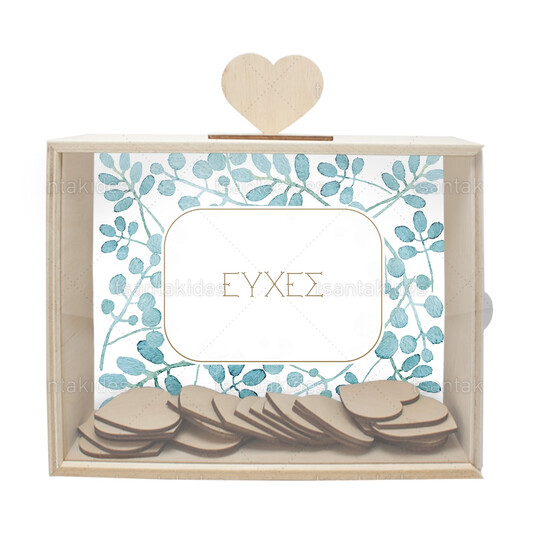 Ξύλινο κουτί ευχών γάμου εκτυπωμένο με θέμα Sky Blue Leaves