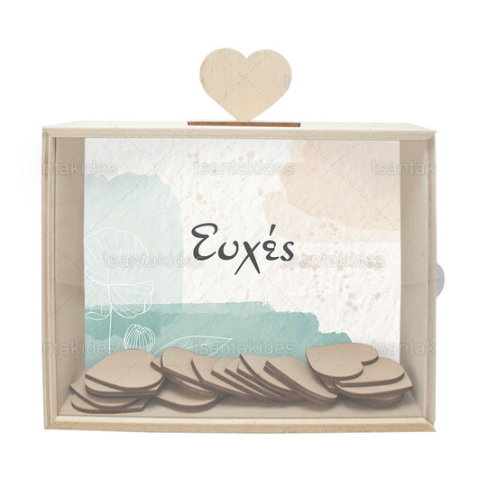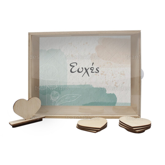 Ξύλινο κουτί ευχών γάμου εκτυπωμένο σε minimal ύφος με pastel χρωματισμούς