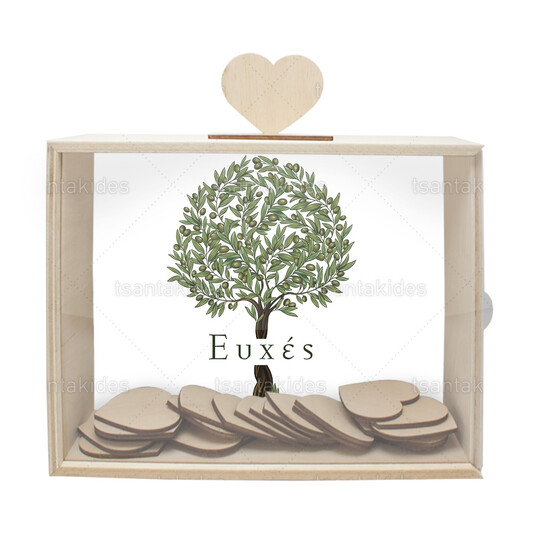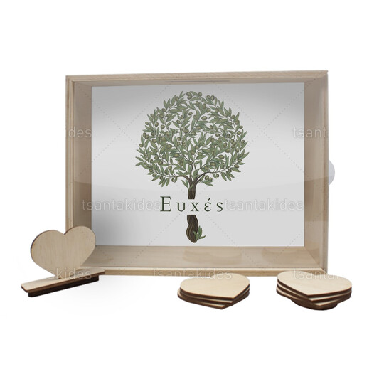 Ξύλινο κουτί ευχών γάμου εκτυπωμένο με θέμα την ελιά