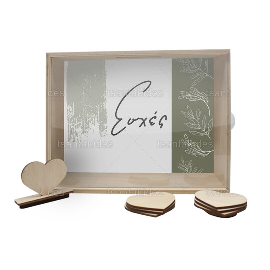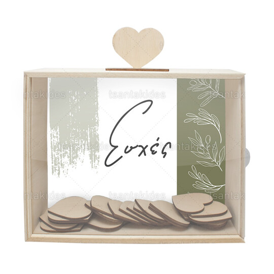Ξύλινο κουτί ευχών γάμου εκτυπωμένο με θέμα Olive branch
