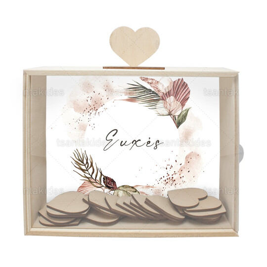 Ξύλινο κουτί ευχών γάμου εκτυπωμένο με θέμα Floral pampas