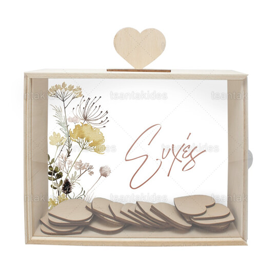 Ξύλινο κουτί ευχών γάμου εκτυπωμένο με θέμα Wildflowers