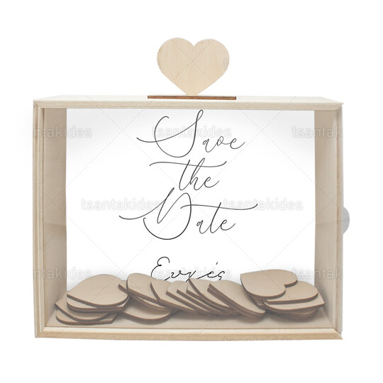 Ξύλινο κουτί ευχών γάμου εκτυπωμένο με θέμα Save the date