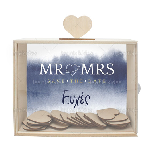Ξύλινο κουτί ευχών γάμου εκτυπωμένο με θέμα Mr & Mrs