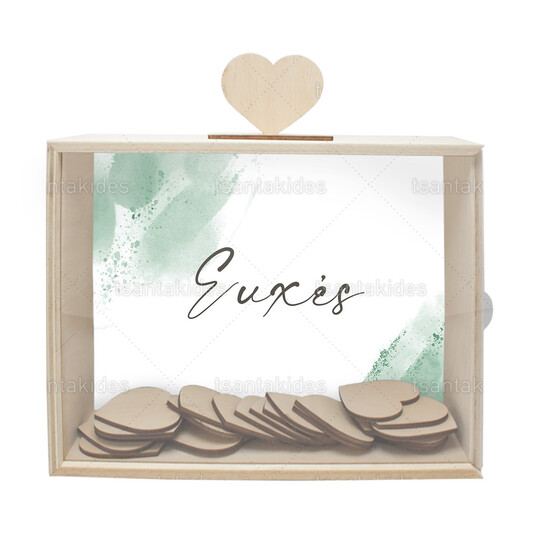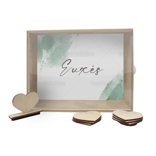 Ξύλινο κουτί ευχών γάμου εκτυπωμένο με θέμα Sage green