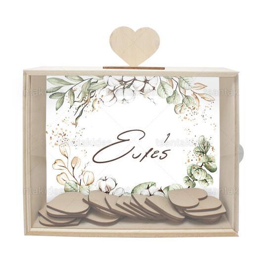 Ξύλινο κουτί ευχών γάμου εκτυπωμένο με θέμα Cotton plant
