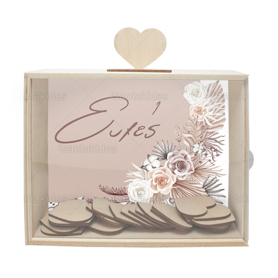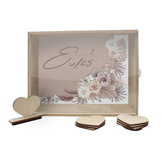 Ξύλινο κουτί ευχών γάμου εκτυπωμένο με θέμα Boho rose pampas