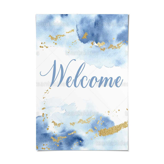 Καρτολίνο γάμου εκτυπωμένο με μπλε και χρυσαφί λεπτομέρειες