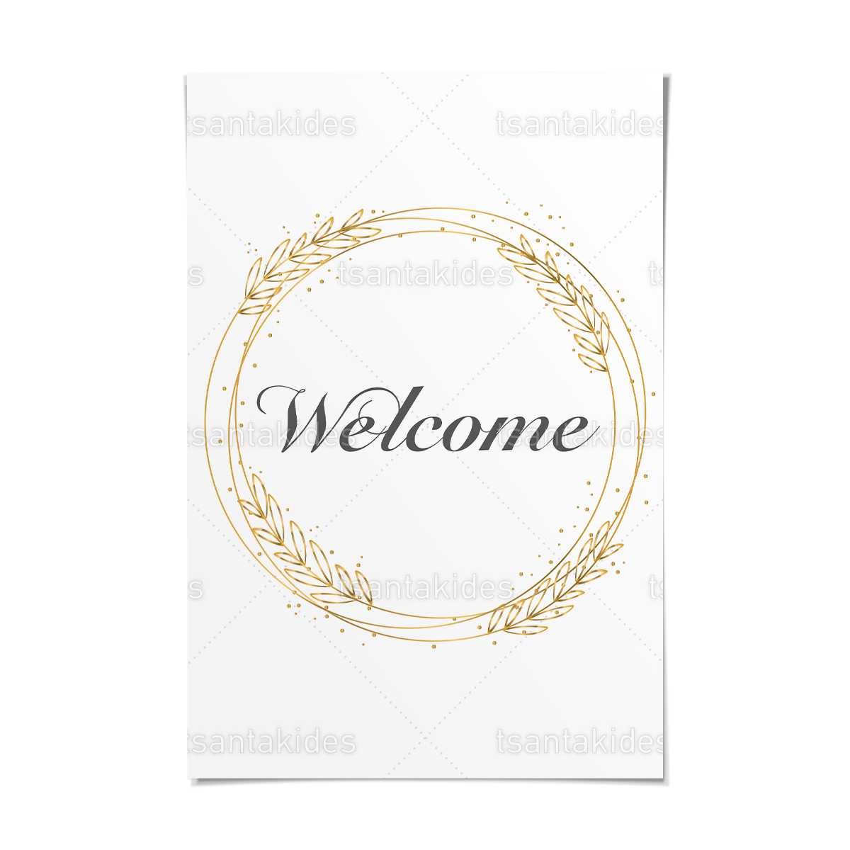 Καρτολίνο γάμου εκτυπωμένο με γραμμικό στρογγυλό στεφανάκι σε χρυσαφί αποχρώσεις