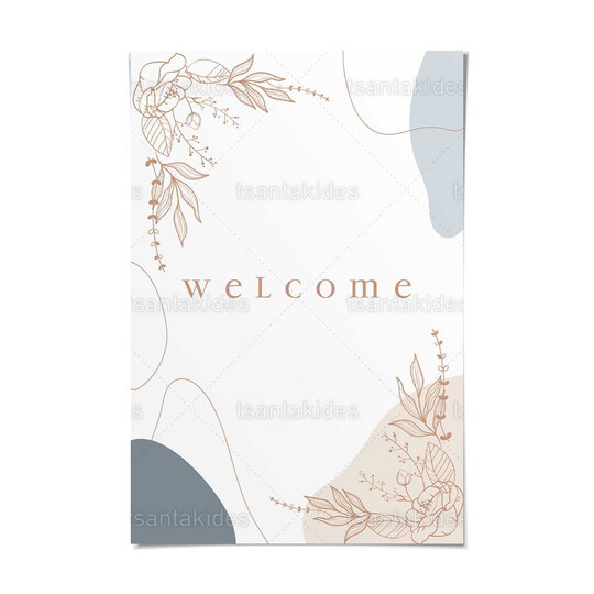 Καρτολίνο γάμου εκτυπωμένο με minimal γραμμικό σχεδιασμό, κλαδιά από λουλούδια σε pastel χρωματισμούς