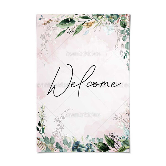 Καρτολίνο γάμου εκτυπωμένο με greenery και στοιχεία από λουλούδια και ευκάλυπτο