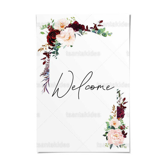 Καρτολίνο γάμου εκτυπωμένο με floral σχεδιασμό σε burgundy και ροζ pastel χρωματισμούς