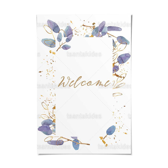 Καρτολίνο γάμου εκτυπωμένο με μοβ χρωματισμούς και χρυσές λεπτομέρειες