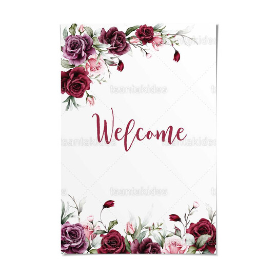 Καρτολίνο γάμου εκτυπωμένο με floral σχεδιασμό σε burgundy και μωβ χρωματισμούς