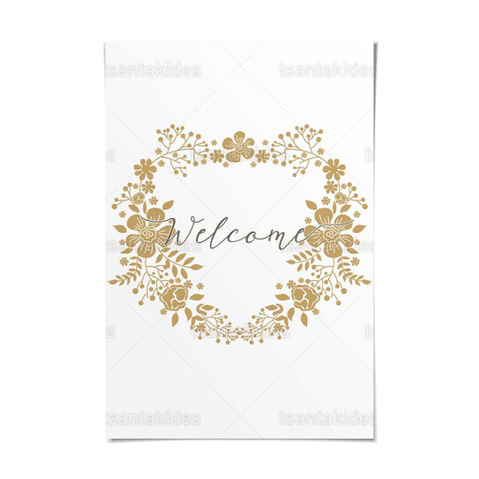 Καρτολίνο γάμου εκτυπωμένο με λογότυπο μονογράμματα και floral χρυσό στεφάνι