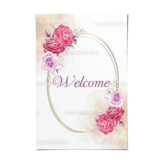 Καρτολίνο γάμου εκτυπωμένο με floral σχεδιασμό και χρυσό οβάλ στεφάνι