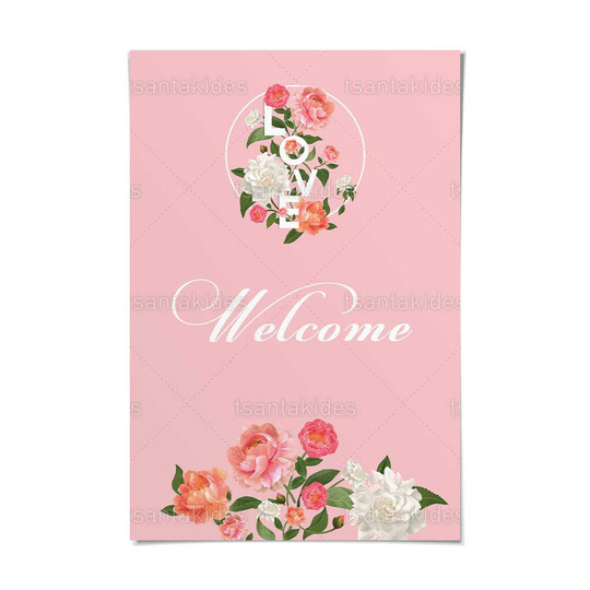 Καρτολίνο γάμου εκτυπωμένο με λογότυπο LOVE με τριαντάφυλλα και ροζ backround