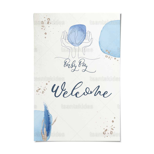 Καρτολίνο γάμου εκτυπωμένο σε abstract ύφος με γραμμικά bebe ποδαράκια σε μπλε χρωματισμούς