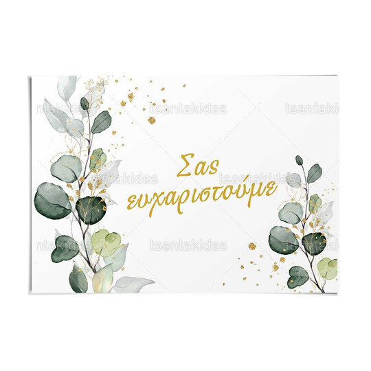 Χαρτινό σουπλά γάμου εκτυπωμένο με greenery design και χρυσαφί λεπτομέρειες