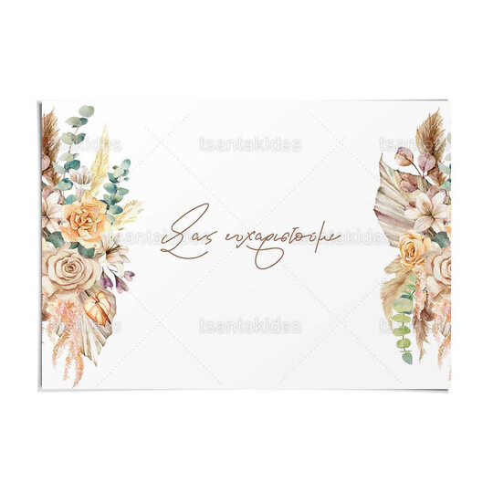 Χαρτινό σουπλά γάμου εκτυπωμένο με floral στοιχεία και pampas