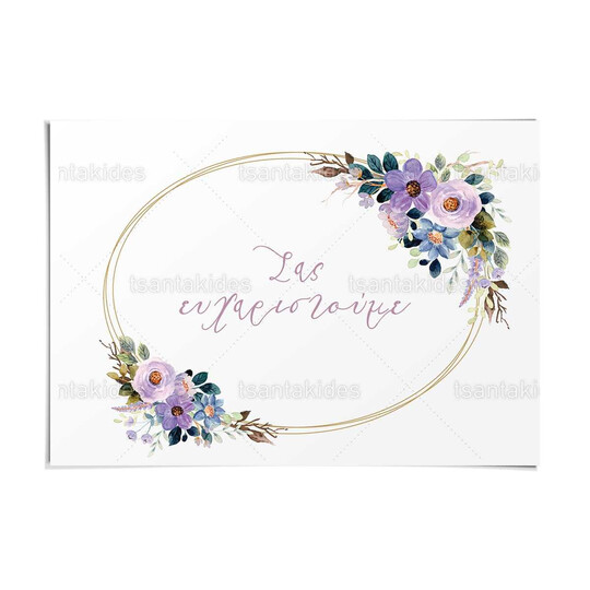 Χαρτινό σουπλά γάμου εκτυπωμένο με θέμα Purple Gold Wreath