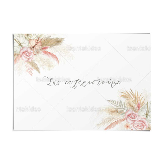 Χαρτινό σουπλά γάμου εκτυπωμένο με bohemian ύφος και pampas λουλούδια