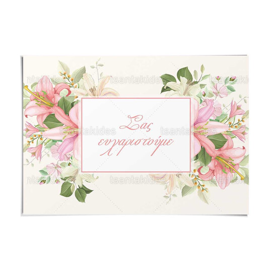 Χαρτινό σουπλά γάμου εκτυπωμένο με floral σύνθεση από ροζ λίλιουμ