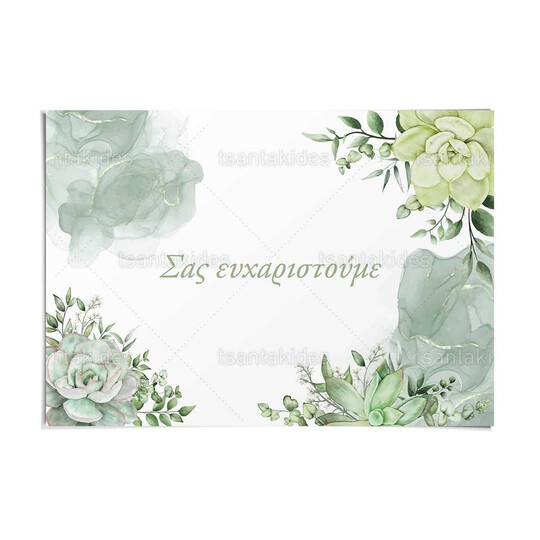 Χαρτινό σουπλά γάμου εκτυπωμένο με floral σύνθεση από παχύφυτα και ευκάλυπτο