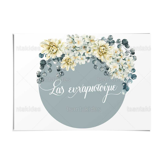 Χαρτινό σουπλά γάμου εκτυπωμένο με dusty blue floral σχεδιασμό σε οβαλ
