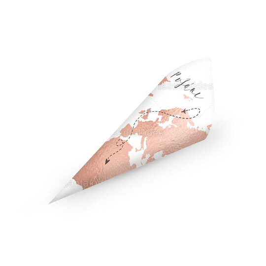 Χωνάκι για ρύζι εκτυπωμένο με θέμα travel, save the date και rose gold χρωματισμούς