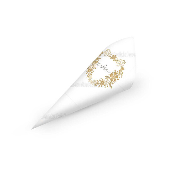 Χωνάκι για ρύζι εκτυπωμένο με λογότυπο μονογράμματα και floral χρυσό στεφάνι